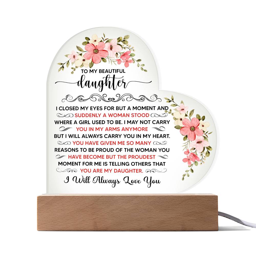 To My Beautiful Daughter – Acrylic Heart Plaque